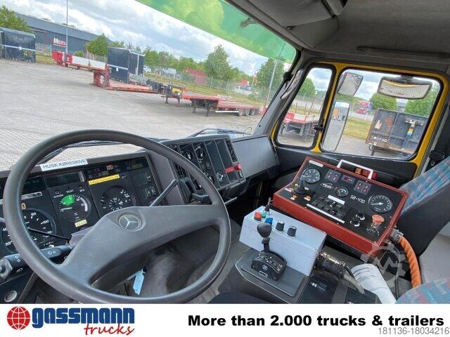 Vehicle location: Bovenden, mtl. house, 1x comfort seat, seat heating, rear window, e-window right, compressed air horn, ABS (anti-lock braking system), power take-off, exhaust raised, automatic, central lubrication system, differential lock, driving lights, work lights, rotating beacon, leaf suspension, connections air+light for trailer hitch, winter service equipment, side aluminum driving protection