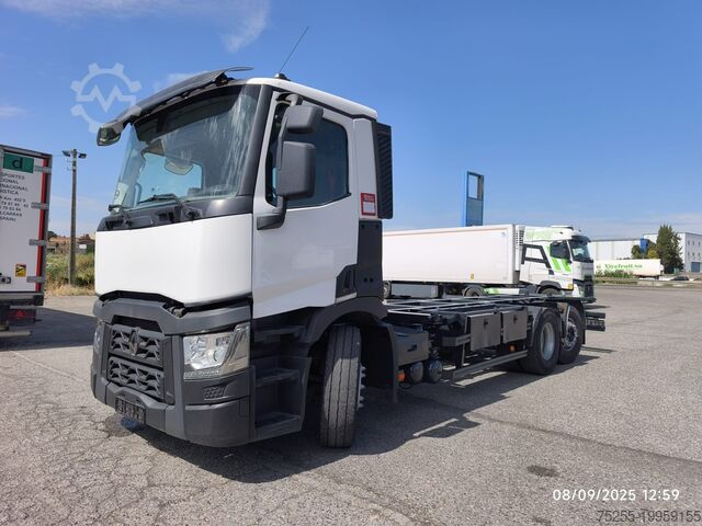 Air conditioning, automatic transmission, engine brake with 2 positions, liftable and steerable 3rd axle, full air suspension, cruise control, radio CD, onboard computer, electric windows, hill start assist, central locking, lane keeping assist, frontal collision warning…