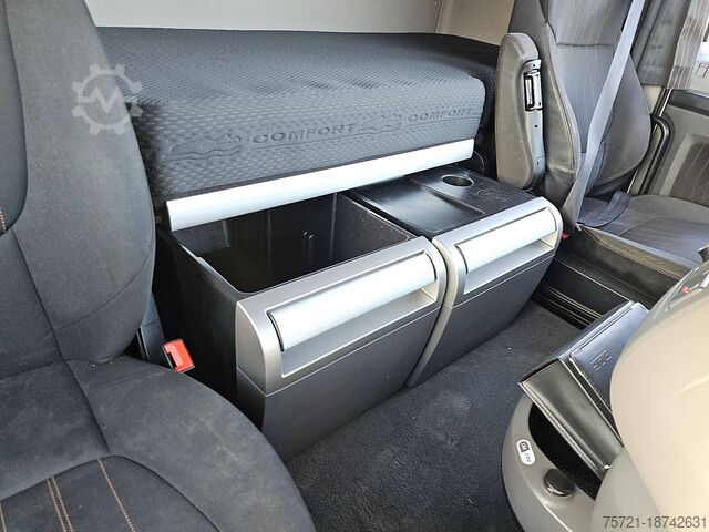 Number of axles: 3, Configuration: 6x2, Unladen weight: 9,850 kg, Gross weight: 26,500 kg, Total fuel tank capacity: 750 liters, Trailer coupling, Kingpin diameter: 40 DIN, Chassis height: 93 cm, Number of differentials: 1, Suspension type: Full air suspension, Cab type: Super Space Cab, Cruise control, Data recorder (control device), Digital tachograph, Air conditioning, Stand air conditioning, Auxiliary heater, Color: White, Engine power: 355 kW (476 hp), Emission standard: Euro 6, Transmission type: AS-Tronic, Gears: 12, Auxiliary brake system, Retarder brand: Intarder, Power steering, ABS, ASR