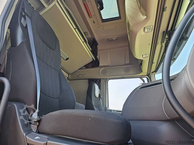 Number of axles: 3, Configuration: 6x2, Total tank capacity: 530 liters, Trailer coupling, Kingpin diameter: 40 DIN, Chassis height: 93 cm, Fifth wheel: Fixed, Number of locks: 1, Suspension type: air suspension, Cabin type: Super Space Cab, Cruise control, Tachograph (control device), Digital tachograph, Air conditioning, Auxiliary heater, Electric windows, Electric mirrors, Radio/cassette, GPS navigation, Color: white, Heated mirrors, Lighting type: halogen lamp, Speed limiter, Lane departure warning, Air conditioning, Heated seats, Bluetooth, Fuel: diesel, Euro: 6, Transmission type: AS-Tronic, Gearbox brand: ZF, Speed limiter, Gears: 12, Additional brake system, Retarder brand: Intarder, Power steering, ABS, ASR, Starter battery, Hooklift and cable system manufacturer: AJK, Seating arrangement: 1+1, Seat material: Fabric, Seat adjustment: Manual