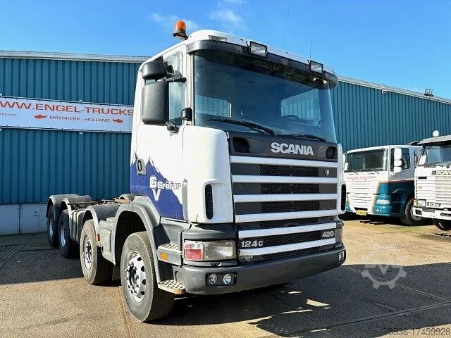 NICE CONDITION, HEAVY DUTY SCANIA R124-420C 8x4 FULL STEEL CHASSIS (12 TIRES), FULL STEEL SUSPENSION & REDUCTION AXLES! !