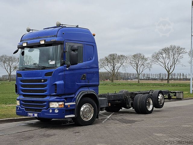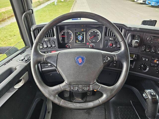 Number of axles: 3, Configuration: 6x2, Curb weight: 17,890 kg, Gross weight: 27,600 kg, Total fuel tank capacity: 400 litres, Trailer coupling, King pin diameter: 40 DIN, Chassis height: 93 cm, Number of differential locks: 1, Alloy wheels, Suspension type: full air suspension, Cruise control, Tachograph (control device), Digital tachograph, Air conditioning, Stationary air conditioning, Auxiliary heater, Colour: Blue, Engine power: 324 kW (434 HP), Euro standard: 5, Transmission type: manual, Gears: 12, Clutch pedal, Auxiliary braking system, Retarder brand: Scania, Power steering, ABS, ASR, PTO (Power Take-Off)