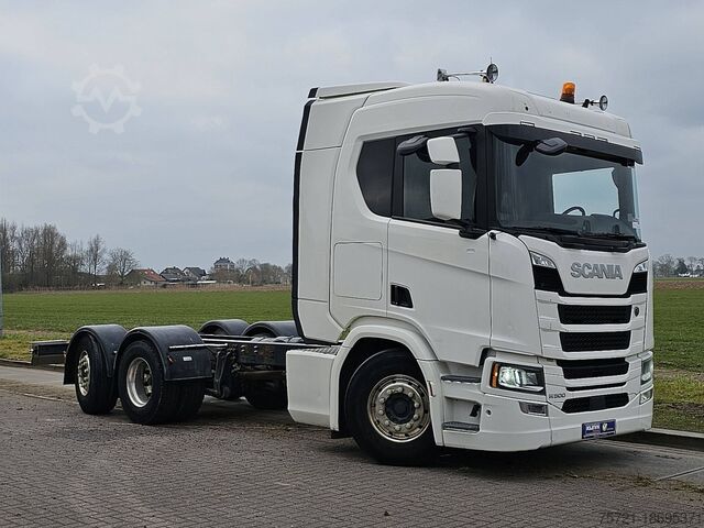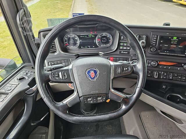 Number of axles: 3, Configuration: 6x2, Unladen weight: 15,144 kg, Gross weight: 27,000 kg, Total fuel capacity: 350 liters, Trailer coupling, Kingpin diameter: Special, Chassis height: 99 cm, Number of locks: 1, Suspension type: Full air, Cab type: High roof, Cruise control, Tachograph (Control Unit), Digital Tachograph, Air conditioning, Auxiliary heating, Color: White, Engine manufacturer: Scania, Engine power: 368 kW (493 Hp), Euro: 6, Transmission type: Opti-cruise, Gears: 12, Additional braking system, Retarder brand: Scania, Power steering, ABS, ASR, R 500 A 6X2*4 NB / WB4150 / RETARDER / FULL AIR