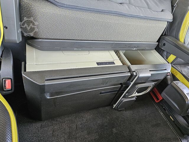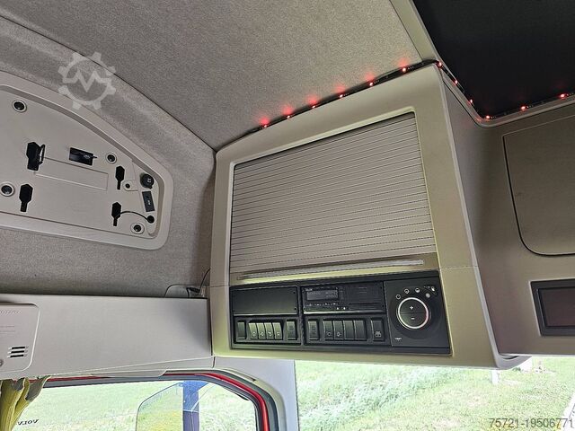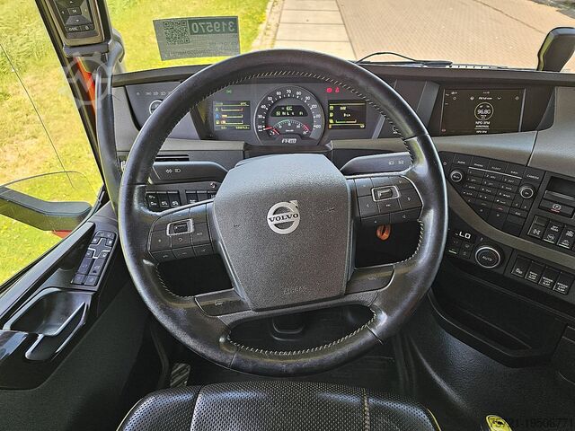 Number of axles: 4, Configuration: 8x4, Twin tyres, Curb weight: 17,375 kg, Gross weight: 44,000 kg, Total fuel tank capacity: 405 liters, Chassis height: 107 cm, Fifth wheel: Fixed, Number of differentials: 2, Suspension type: Full air suspension, Cabin type: Globetrotter, Cruise control, Tachograph (control unit), Digital tachograph, Air conditioning, Number of airbags: 1, Parking heater, Electric windows, Electric mirrors, Radio/cassette, Colour: Red, Heated mirrors, Lighting type: Xenon lamp, Speed limiter, Lane departure assistant, Climate control, Seat heating, Bluetooth, Engine output: 488 kW (654 hp), Fuel: Diesel, Emission class: Euro 6, Transmission type: I-Shift, Transmission make: Volvo, Speed limiter, Gears: 12, Additional braking system, Retarder make: Voith, Power steering, ABS, ASR, Starter battery, Central locking, Seating configuration: 1+1, Seat upholstery: Leather, Electric seat adjustment