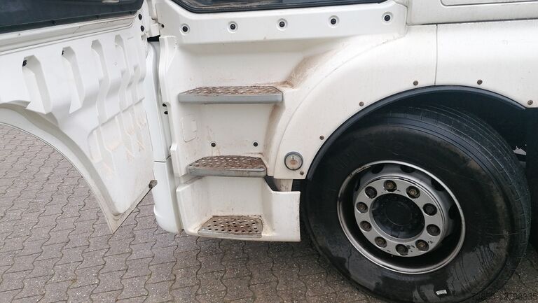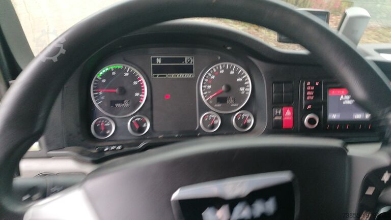 На момент осмотра грузовик MAN находился в хорошем состоянии, однако большинство шин требует замены. Левый задний грязезащитный щиток оторван. К сожалению, прицеп нельзя было отсоединить, из-за чего проверка тягача была частично ограничена. Наклонить кабину водителя для осмотра двигателя не удалось из-за отсутствия нужных инструментов. Тягач оснащён двухсторонней гидравликой с двумя рукавами и дополнительным насосом для работы с «walking floor». Полная высота с установленным кабельным спойлером — 3,9 м.