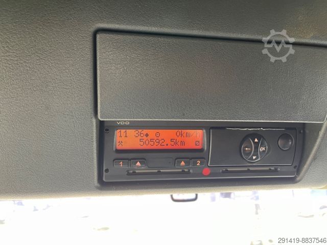 End cross member, Trailer coupling: Rockinger 400 G 150 A, Trailer socket ABS, Armrest driver's seat, Audio system: Radio MAN CD 24V, Exterior mirror wide angle and electr. adjustable and heatable, left, Exterior mirror wide angle and electr. adjustable and heatable, right, Battery 140 Ah, Battery disconnector mechanical, Kerb mirror right electr. adjustable and heatable, brake connection 2 lines on rear frame, differential lock rear axle, air horns on cab roof (2), comfort driver's seat, air-suspended and heated, with lumbar support and shoulder adjustment, tinted windscreen, 12-speed gearbox - type: ZF 12 AS, Tipmatic, rocker arm - brake EVB, automatic air conditioning, fuel tank: 300 ltr, cool box, roof air deflector, Eberspächer Airtronic D2 auxiliary air heater, lower and upper sleeper berth with storage space, seat cover/upholstery: comfort quality, exterior sun visor, side window sunblind, driver's door, cab socket 12V and 24V, tinted door windows