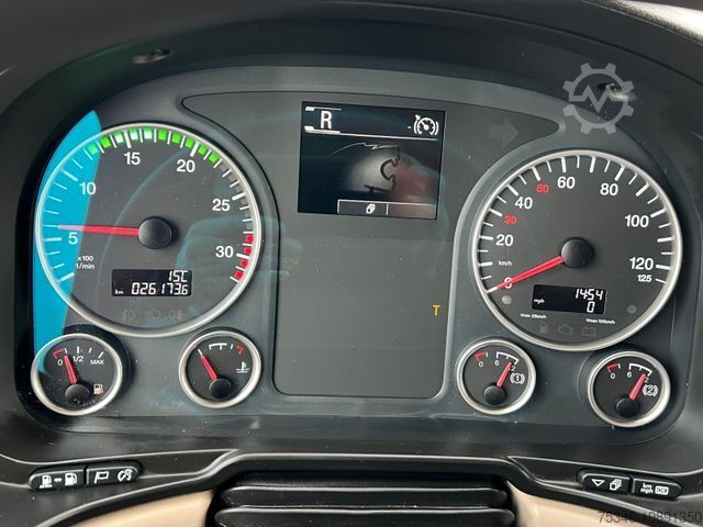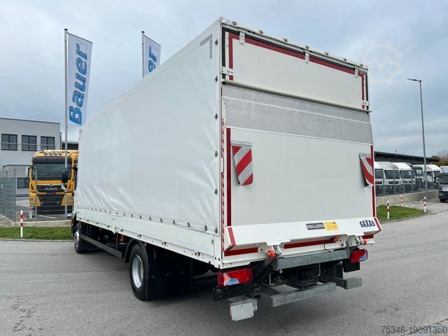 As good as new MAN 15-ton flatbed tarpaulin truck with a 7.25-meter-long flatbed and DHollandia tail lift, 1,500 kg, 8.0-ton payload, 290 hp, 3-seater, air conditioning, rear axle with air suspension, trailer coupling, gross combination weight 33 tons. , cruise control, and much more.