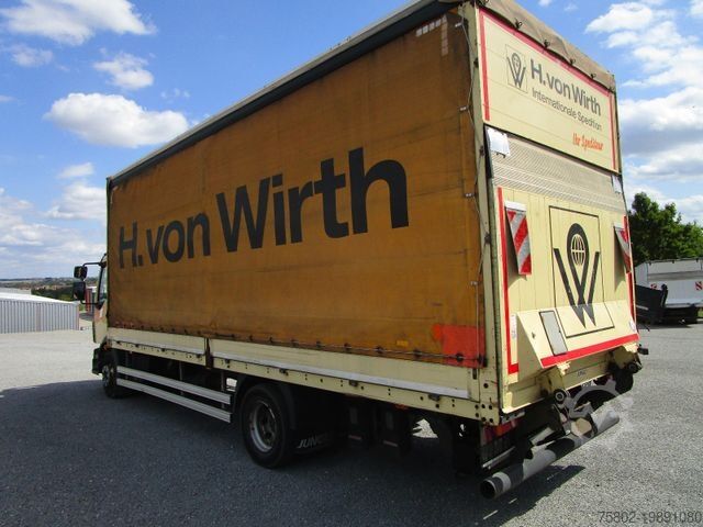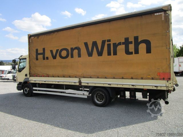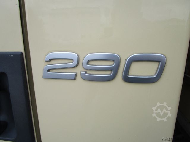 VOLVO FL 12.290 L 4x2. Aluminium dropside body with tarpaulin on the left, Bär tail lift 1,500 kg. Dimensions: 7.20 x 2.49 x 2.70 m. Wheelbase 5 m. 8-speed gearbox, ABS, Maul-type towing jaw with air and electric front wall connectors, lashing eyes, fire extinguisher, rear air suspension, sun visor, 6-cylinder engine, AdBlue, toolbox, cruise control, electric windows, radio/CD, roof hatch, immobiliser, differential lock, engine brake, comfort seat, seat heating. ==== German registration + 1 owner ==== ==Daily purchase of commercial vehicles, trade-ins accepted==