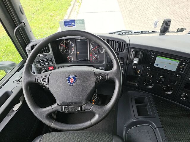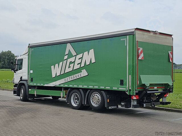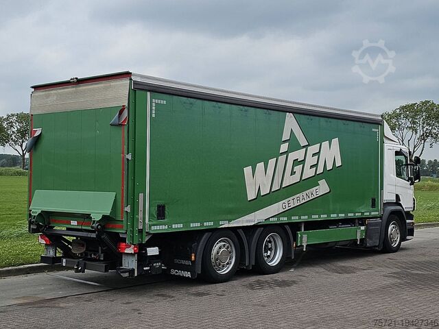 Number of axles: 3, Configuration: 6x2, Unladen weight: 10,685 kg, Gross weight: 26,100 kg, Total fuel tank capacity: 300 litres, Trailer coupling, Kingpin diameter: 40 DIN, Number of diff locks: 1, Central lubrication, Suspension type: Full air, Cab type: Short cab, Cruise control, Tachograph (control device), Digital tachograph, Air conditioning, Auxiliary heater, Electric windows, Electric mirrors, Radio/cassette, GPS navigation, Colour: White, Heated mirrors, Reverse camera, Lighting: Halogen lamp, Speed limiter, Lane assist, Climate control, Seat heating, Bluetooth, Engine output: 235 kW (315 Hp), Fuel: Diesel, Euro: 6, Transmission type: Opti-cruise, Transmission brand: Scania, Speed limiter, Gears: 12, Power steering, ABS, ASR, Starter battery, Central locking, Seat configuration: 1+1, Seat covering: Fabric, Seat adjustment: Manual, Tail lift, Tail lift design: Rear flap, Tail lift capacity: 2,000 kg, Tail lift manufacturer: B.A.R. Cargolift, Tail lift material: Aluminium, Tail lift dimensions: 220 x 252