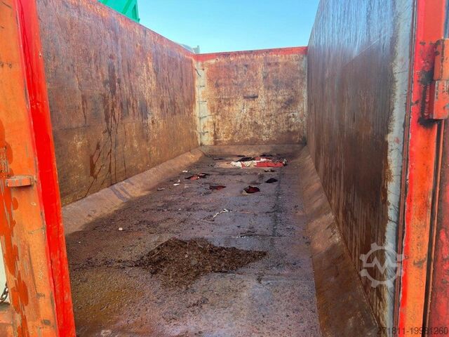 TITLE: USED OPEN-TOP ROLL-OFF CONTAINER FOR BULKY WASTE WITH REAR OPENING AND DOUBLE LEAF DOORS, FLOOR REQUIRES REPAIR