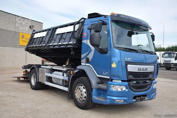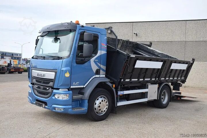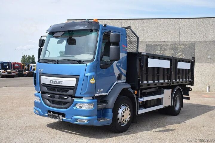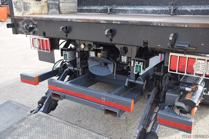 164,000 km – 3-way tipper with rear door and storage compartments – Dual-use with removable tailgate – Air conditioning – 3 seats – Rockinger – Gross weight 19,000 kg – Kerb weight 9,240 kg – Wheelbase 3,750 mm -.