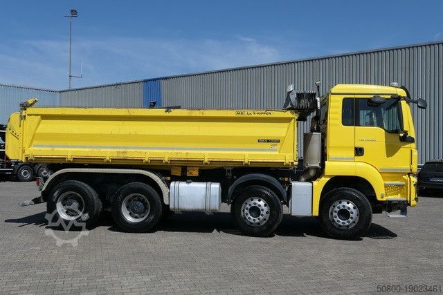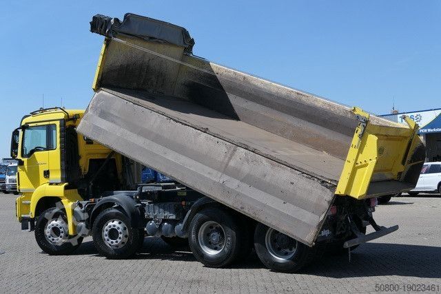 Кузов Meiller с трехсторонней разгрузкой, задний желоб 400 мм, Bordmatic, гидравлическая противоподкатная защита. складная, сдвижная крыша, электропривод. Привод, ZF - Intarder, MAN BrakeMatic, ABS, блокировка дифференциалов, помощь при трогании на подъеме, круиз-контроль, автоматический климат-контроль, многофункциональное рулевое колесо, радио с 7-дюймовым цветным дисплеем, Bluetooth, навигационная система, камера заднего вида (активируется при включении задней передачи), дополнительная камера за кабиной водителя, наружные зеркала заднего вида с подогревом и электроприводом. регулируемые электрические стеклоподъемники для дверей водителя и пассажира, люк на крыше, холодильник, комфортное сиденье водителя с подвеской, 2 проблесковых маячка, противотуманные фары, защитные решетки для фар, пневматические гудки на крыше кабины водителя, выключатель массы, приподнятая выхлопная система, листовые рессоры, алюминиевые диски ALCOA, алюминиевый бак площадью ок. 390 литров, транспортное средство может быть покрыто рекламой и/или наклеено