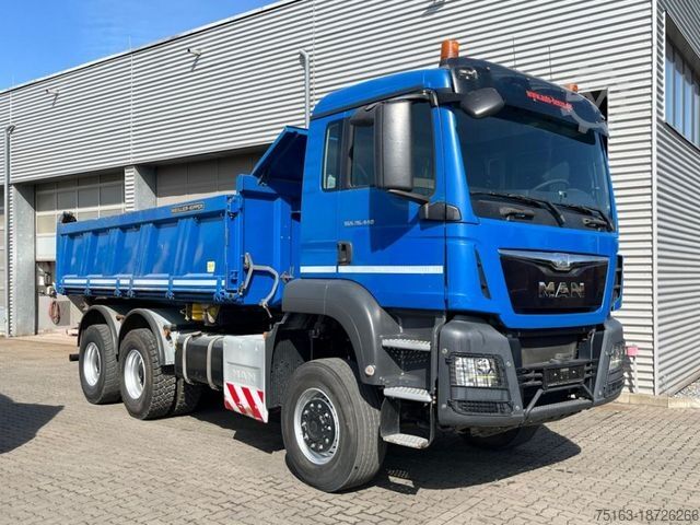 ----Body: Meiller 3-sided steel, Bordmatic left, raised bulkhead with excavator protection, jet side walls.