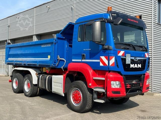 ----Bodywork: Meiller 3-sided steel, heavy-duty on-board mechanics on the left (2 stamps), raised front wall with excavator protection.----German vehicles, top condition, technically and visually, 1st hand, heavy-duty design, 13to axle unit, large spring package front and rear axle, stabilizer reinforced ex works etc.