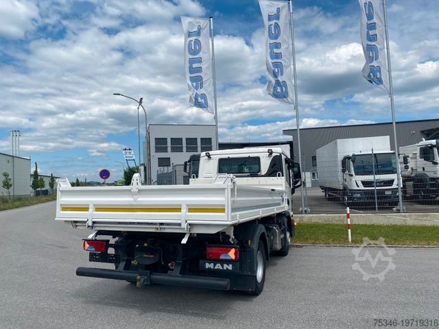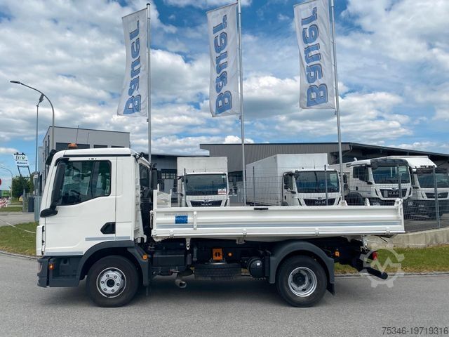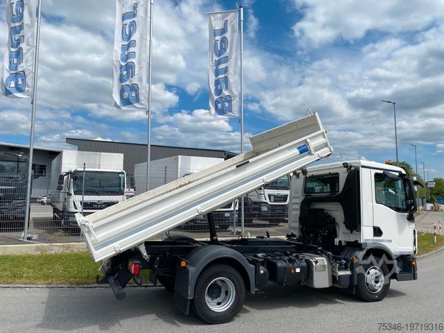 As good as new 12 ton. MAN TGL 12.250 4x2 TG3 truck with a 6-cylinder engine and 250 hp, Meiller 3-way tipper, payload of 6,380 kg, 2 tow bars, GVW 25,000 kg, air conditioning, rear axle differential lock, central locking, and service in April 2025 with a new engine oil change at 18,500 km.