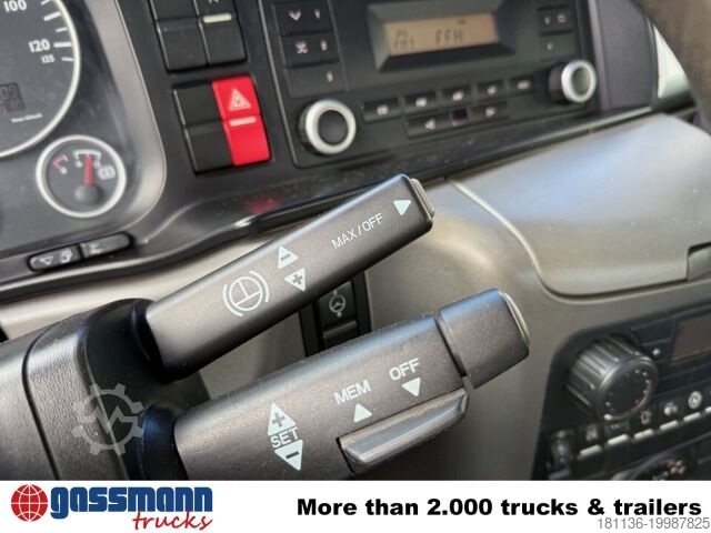 Vehicle location: Bovenden, steel body, registration as house, 1x comfort seat, seat heating, rear window, electric mirrors, heated mirrors, electric window left, electric window right, sun visor, cruise control, 16-speed manual transmission, ABS (anti-lock braking system), constant throttle, PTO (power take-off), differential lock, work lights, beacon, storage box, leaf suspension, towing hitch with air, light, and hydraulic connections, low-noise G1, underride protection, pendulum flaps, roof hatch, green emissions sticker.