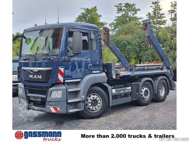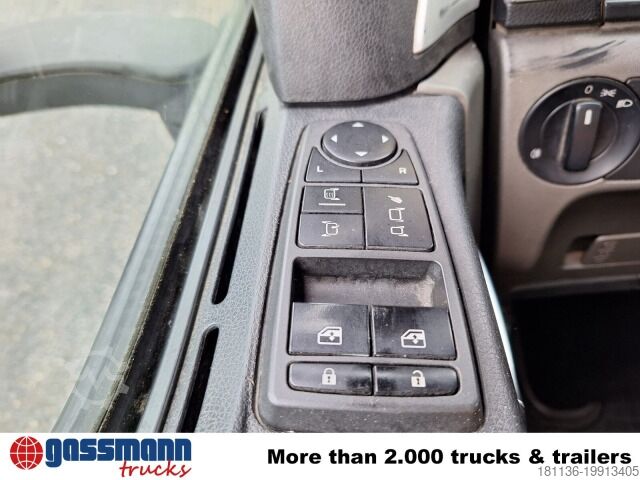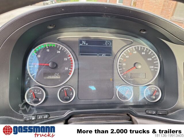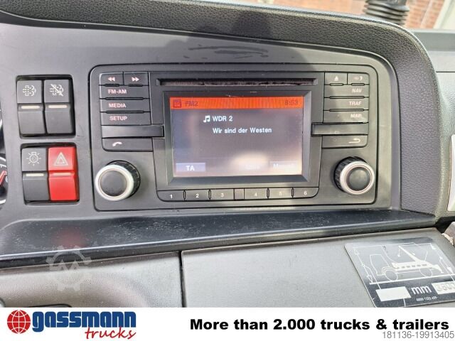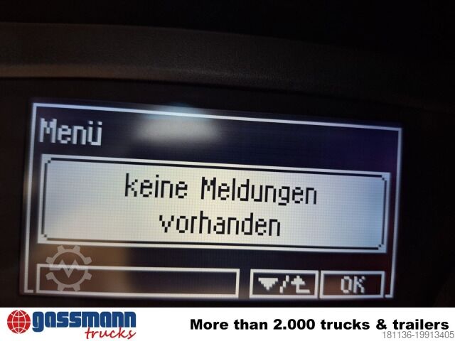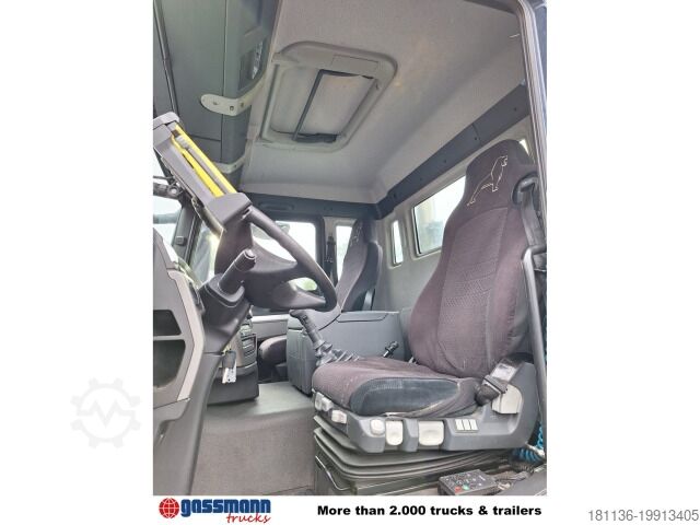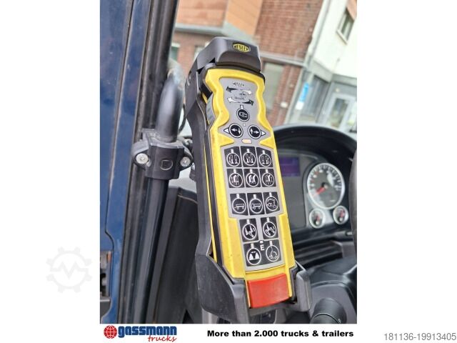 Vehicle location: in transit, steel body, with cabin, 1x comfort seat, 1x air-suspended seat, electric mirrors, heated mirrors, electric window left, electric window right, air conditioning, 16-speed manual transmission, ABS (anti-lock braking system), high-mounted exhaust, lift and lower function, leaf and air suspension, last axle liftable and steerable, trailer coupling (air and light connections), radio remote control, green environmental badge.