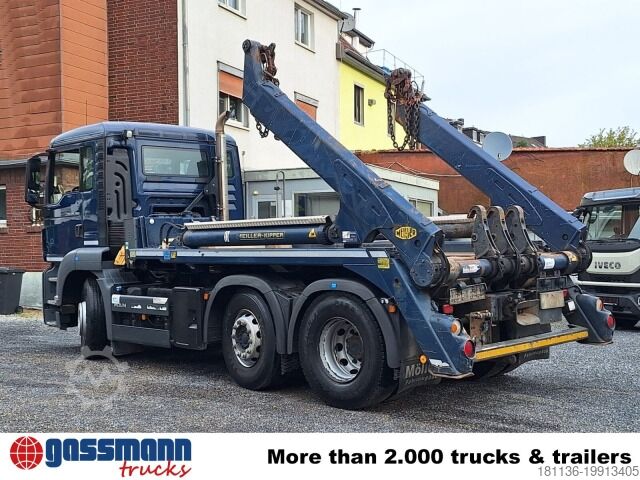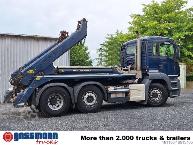 Wheelbase: 3150 mm. Superstructure: Meiller AK 16 MT telescopic skip loader, steering/lifting axle, remote control, pneumatic container locking system, for additional charge also available with used or new skip containers. Disc brakes on front and rear axles. Data subject to change, as vehicle is in transit! ACCESSORY DETAILS WITHOUT GUARANTEE, subject to changes, prior sale and errors!