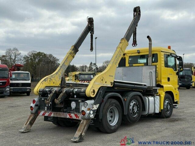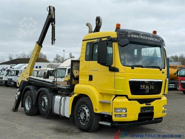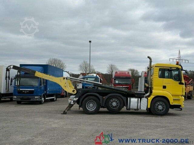 German vehicle, 1st owner, condition see photos, MAN 6x2 telehandler, from the premium manufacturer Gergen, type: TAK VL Adonis 1205, 15,500 kg lifting capacity, footprint: 4,000 x 2,100 mm, body height: 1,350 mm, easy operation via radio remote control + floor control, pneumatic locking, steerable leading axle, leaf/air suspension + raise/lower, trailer coupling, towing capacity: 24,000 kg, Duomatic, rear cab wall with window, air conditioning, rear view camera, 2 air-suspended comfort seats, seat heating, refrigerator, engine brake, lane departure warning, differential lock, electric windows, heated electric mirrors, roof hatch, wheelbase: 2,600 + 1,350 mm, GVW: 26,000 kg, payload: 14,250 kg