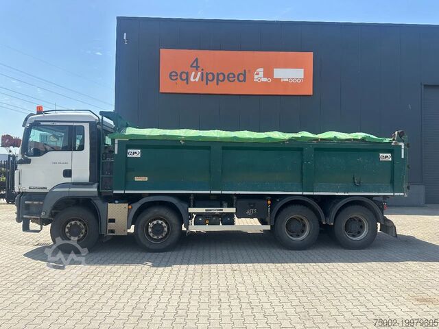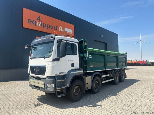 2013 MAN TGS35.440 8x4 with AJK HARDOX rear tipper, manual transmission, 578,300 km, EURO-5, Belgian registration with valid technical inspection until 26.12.2025