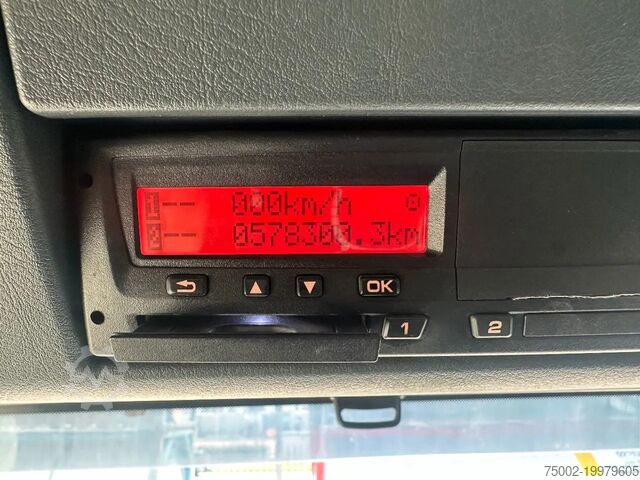 Rear axle 2: Tire size: 315/80-R22.5; Twin tyres; Max. axle load: 13,000 kg; Tire tread left inside: 55%; Tire tread left outside: 55%; Tire tread right inside: 55%; Tire tread right outside: 55%; Brakes: drum brakes; Suspension: air suspension