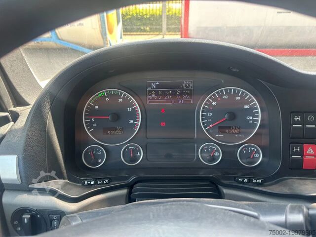 Rear axle 1: Tire size: 315/80-R22.5; Twin tyres; Max. axle load: 13,000 kg; Tire tread left inside: 80%; Tire tread left outside: 75%; Tire tread right inside: 70%; Tire tread right outside: 70%; Brakes: drum brakes; Suspension: air suspension