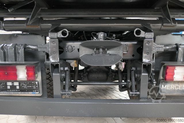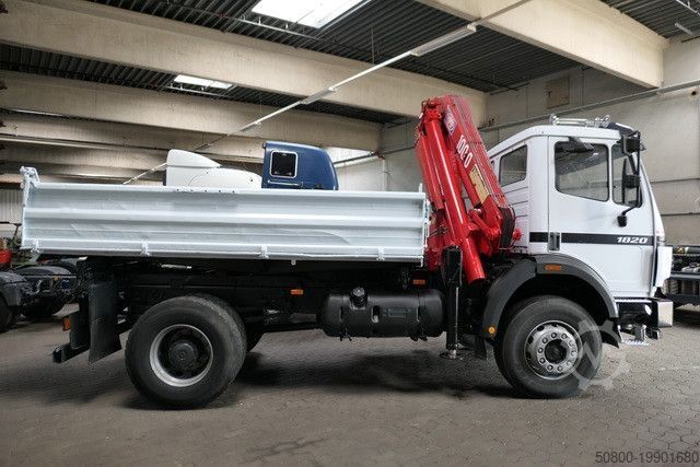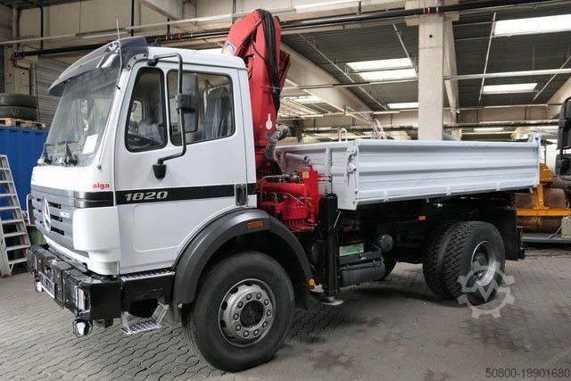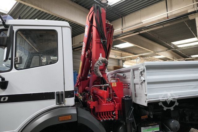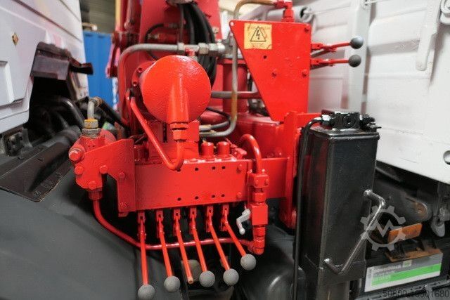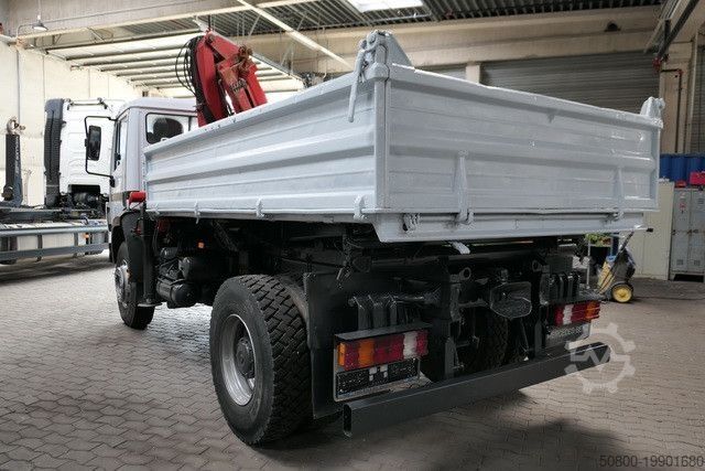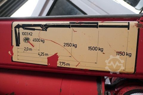 Самосвальная надстройка с трёхсторонней разгрузкой, центральный кран HMF тип: 1003 K2, двухточечная опора, управление с земли, 2 ступени гидравлического выдвижения, диаграмма грузоподъемности: ок. 2,00 м – 4500 кг, 4,25 м – 2150 кг, 7,75 м – 1150 кг, ABS, блокировка дифференциала передней и задней оси, комфортабельное подвесное сиденье водителя Isringhausen, наружные зеркала с электрорегулировкой с обеих сторон, электростеклоподъемник пассажирской двери, форточка, противотуманные галогенные фары, корректор фар, заднее стекло, система гибкой диагностики (FDS), индикатор износа тормозных колодок, централизованная система смазки, защитная сетка для фар от камней, топливный бак ок. 210 л, рессорная подвеска. Возможна оклейка и/или нанесение рекламных надписей на кузов.