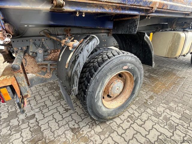 ----Body: Meiller 3-sided steel, raised bulkhead, spring-loaded side walls left and right, lashing eyes.