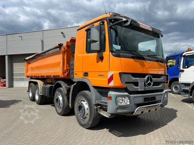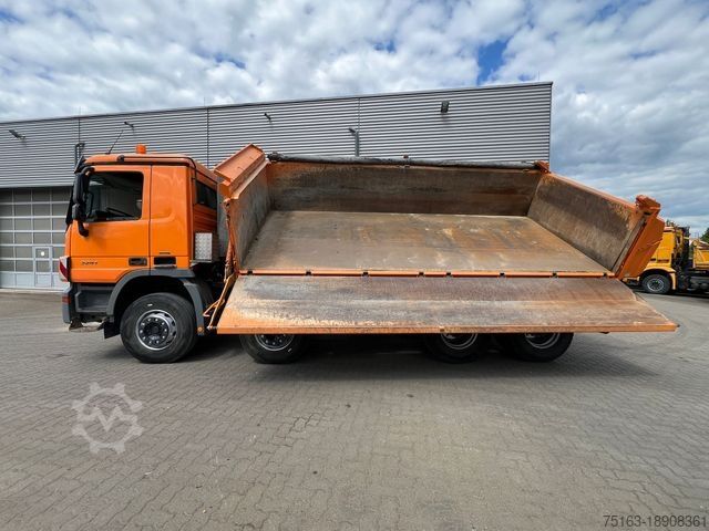 ----Body: Meiller 3-sided steel, raised bulkhead with excavator protection, spring-loaded left side wall (swinging + foldable), rear chute, roll-up tarpaulin.