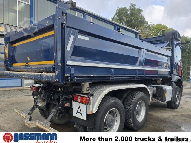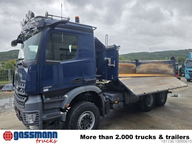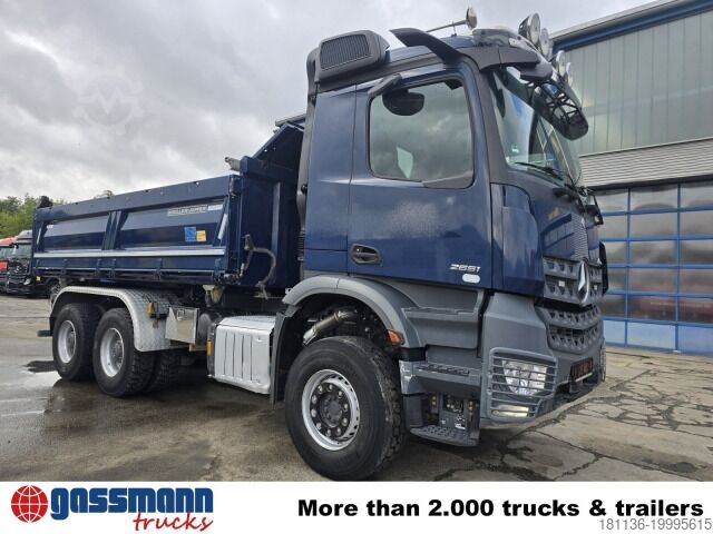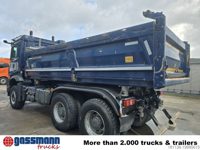 Vehicle location: in transit, Mercedes PowerShift 3, internal equipment, 1x comfort seat, rear window, electric mirrors, heated mirrors, electric window left, electric window right, air conditioning, sun visor, navigation system, auxiliary heating, ABS (anti-lock braking system), traction control (ASR), constant throttle, PTO (power take-off), differential lock, fog lights, high beam lights, beacon, storage box, leaf suspension, side tipping control (Bordmatik) left, trailer coupling with air, light, and hydraulic connections, lashing eyes, roof hatch, green environmental sticker. Wheelbase: 3,600 mm. Body: Meiller 3-way tipper body with side tipping control (Bordmatik) left. Disk brakes with full protection on front and rear axles, electronic parking brake, residual heat utilization, navigation system, additional hot water heater, leather steering wheel, Multimedia Cockpit Interactive, lashing recesses in tipper bed, total train weight 80,000 kg. Data subject to change, as vehicle is in transit! ACCESSORY INFORMATION WITHOUT WARRANTY, changes, intermediate sale and errors reserved!