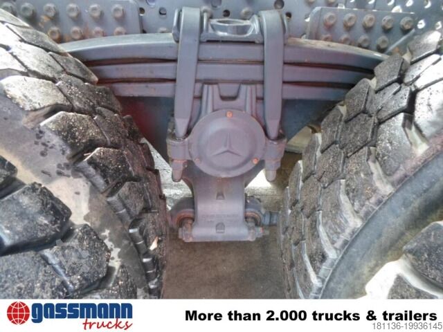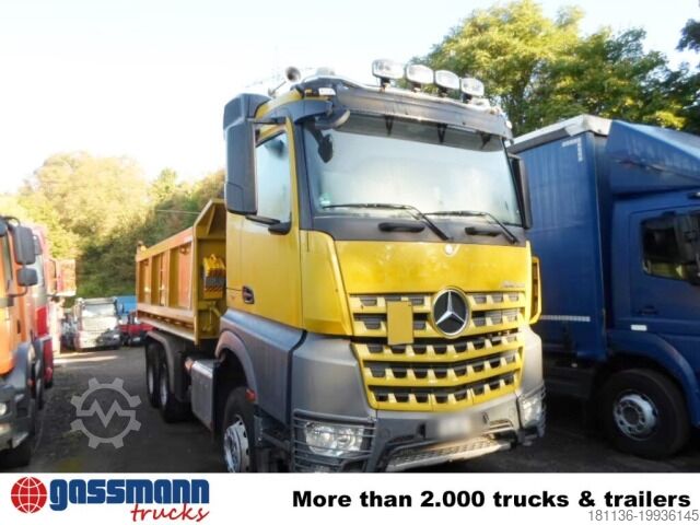 Wheelbase: 3600 mm. Body: Müller three-way tipper body with left-side Bordmatik, 7.5t front axle, planetary rear axle with 300 mm ring gear, 13.4t axle load. Electronic braking system with ABS and ASR, ABS can be switched off, disc brakes with full protection on front and rear axles, turbo-retarder clutch, additional parking brake on front axle, condensate monitoring for air system, stabilizer bars (front and rear), residual heat utilization, additional hot water heating, construction site filter, ClassicSpace comfort lock system, Offroad driving program, Mercedes PowerShift 3, LED daytime running lights, Fuel Performance Pack 1, pre-installed for toll collection, protective plate for tank and bumper, high-performance engine brake, gearbox oil cooling, Powertrain Pack, Protection Pack, Grounder kit, MB 131-2c PTO with pump.