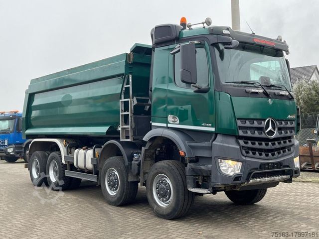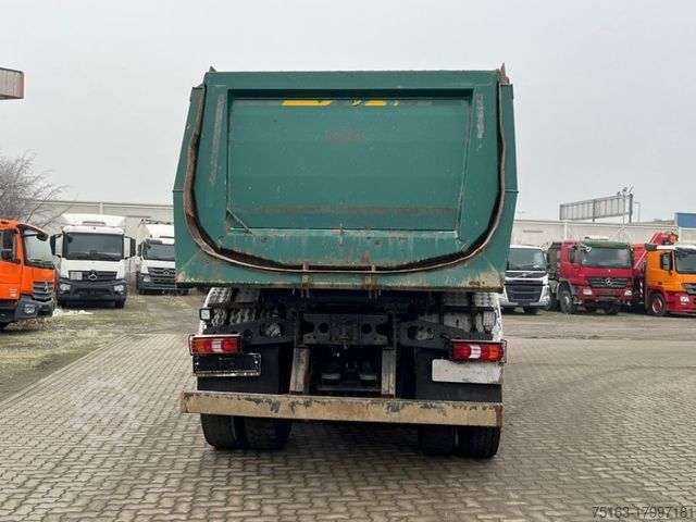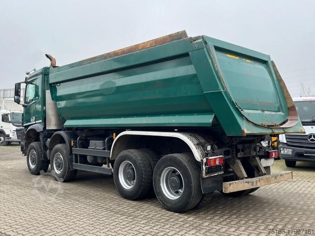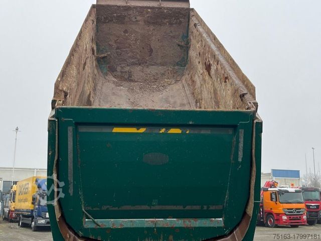 ----Body: Meiller Halfepipe rear tipper body, capacity approx. 22 m³, heavy-duty version (36,000 kg) with joint in the middle, bulkhead with excavator protection, rear chute.----Comfort Package cab, leather steering wheel, weight variant 42 to, Grounder, engine version Euro 6, D
