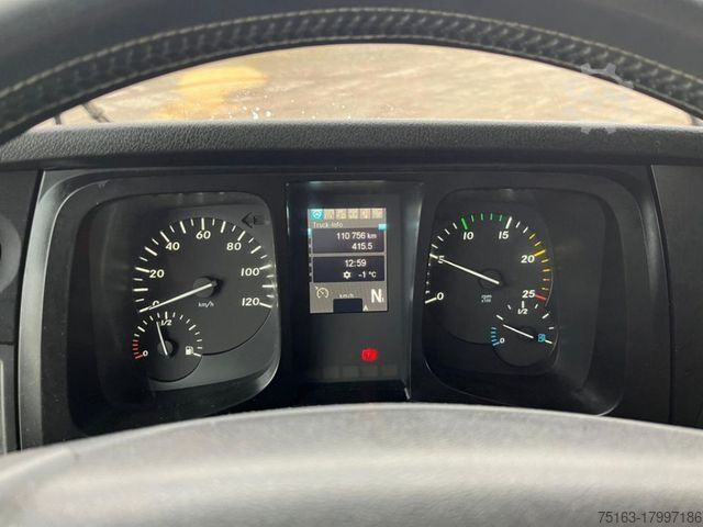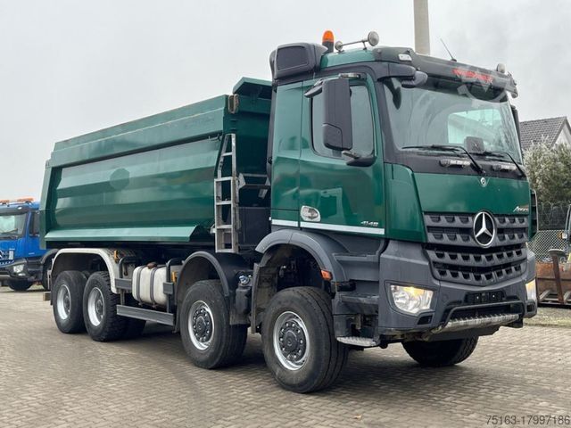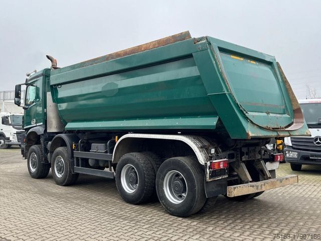 ----Body: Meiller Halfepipe rear tipper body, capacity approx. 22 m³, heavy-duty version (36,000 kg) with joint in the middle, bulkhead with excavator protection, rear chute.----Comfort Package cab, leather steering wheel, weight variant 42 to, Grounder, engine version Euro 6, D