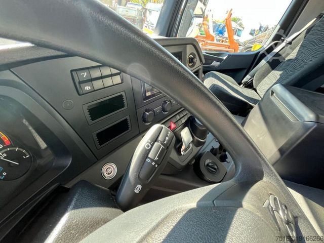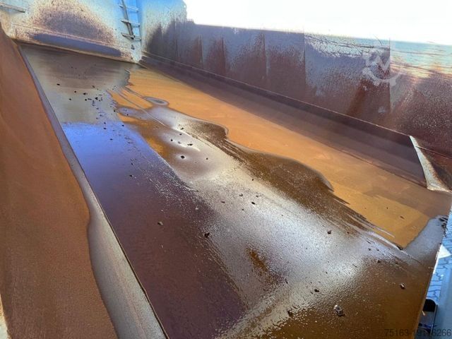 Body: Meiller rectangular rear tipper body, capacity approx. 18 m³, heavy-duty version, 36,000 kg (with central joint), Jet side panels, bulkhead with excavator protection, folding tailgate, rounded corners in the tipper body (minimizing material residue).