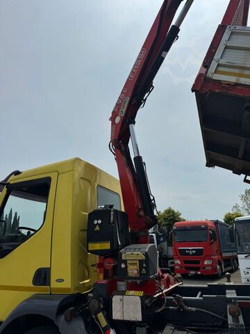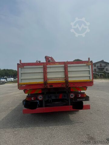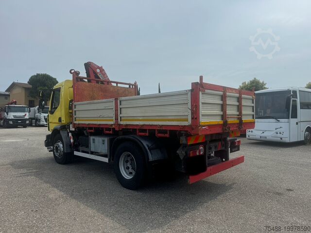 Renault Midlum 16-220 Dci 3-Way Tipper with Rear-Mounted Crane, 2 Axles 4x2, Year Registered 2006. Equipped with a Fassi F95 crane with 3 hydraulic extensions and remote control. Tipper body length: 4,200 mm, wheelbase: 3,700 mm, overall vehicle length: 6,950 mm, GVW: 16,000 kg, payload: 8,590 kg. Manual transmission with 8 speeds + reverse, steel leaf suspension, air conditioning, ABS, engine brake, Euro 3, 90% tires, sun visor, electric windows and mirrors, radio, 360,000 km, in good operational condition.
