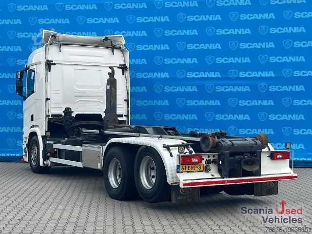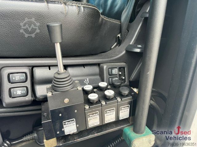 Colour: White, Unladen weight: 10,975 kg, Gross permissible weight: 28,000 kg, 1st axle: 385/65 R22.5, 2nd axle: 295/80 R22.5, Air suspension, Hydraulic tipping system, Lift axle, Retarder, Digital tachograph, EBS - Electronic Braking System, ESP - Electronic Stability Program, Automatic air conditioning, Adaptive Cruise Control ACC, Heated seats, LED headlights, Headlamp cleaning system, Automatic lights, Headlamp height adjustment, GSM preparation Bluetooth, Rain sensor, Power steering, Mechanically adjustable steering column, Roof hatch, Roof spoiler, Fog lights, Electrically adjustable and heated exterior mirrors, Electric kerb mirror, Wide-angle mirror, Central locking, Windshield, Refrigerator, Axle load indicator, Hill Hold Control HHC, LED daytime running lights, 1x15-pin connector, sailing function, Cornering light, Telematics system, Seat air conditioning, Hooklift, Upper and lower bed, SCR, PTO preparation.