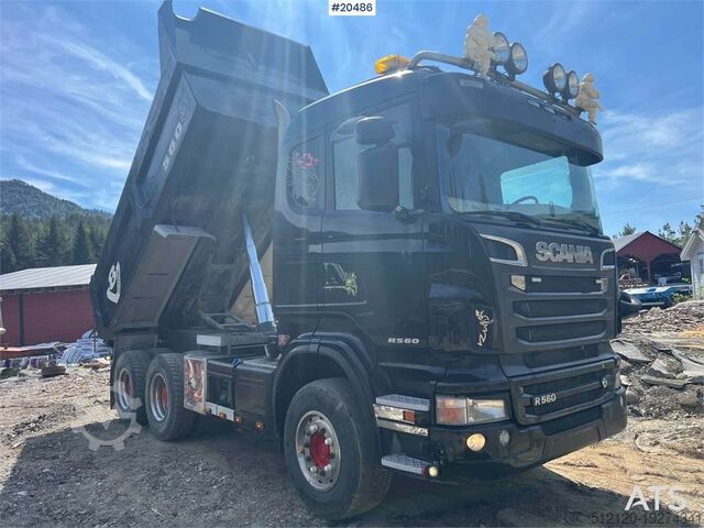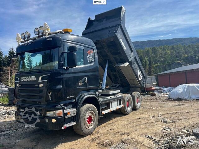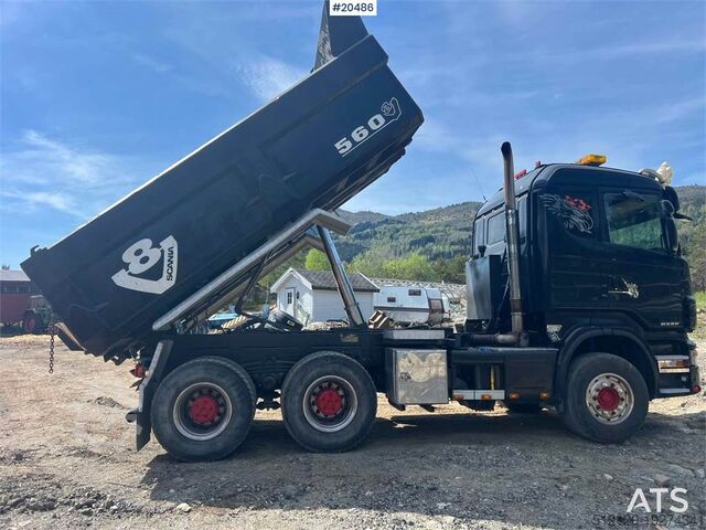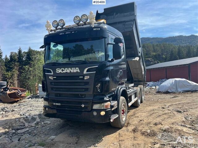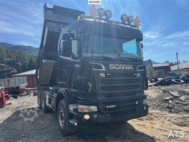 Продается самосвал Scania R560 6x4 2011 года с черными номерами.