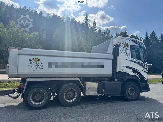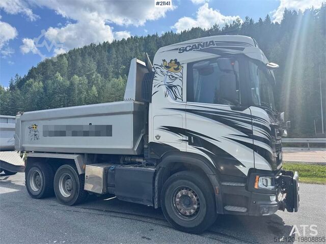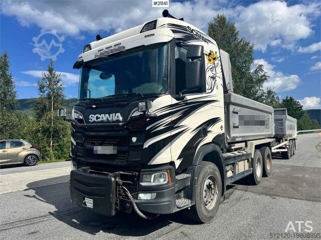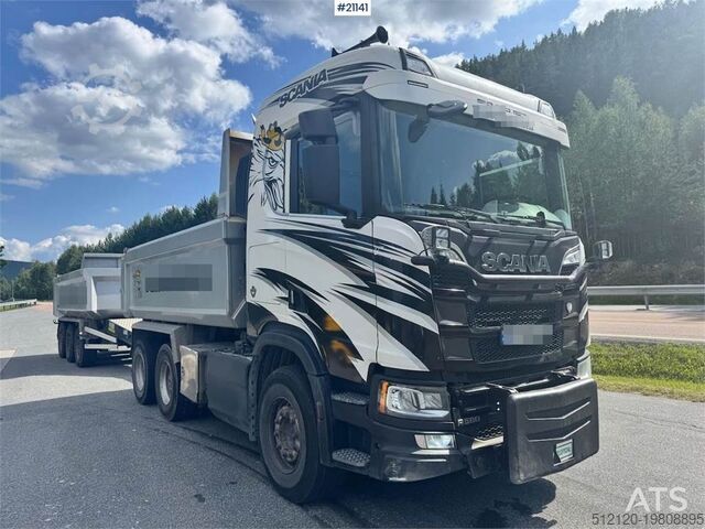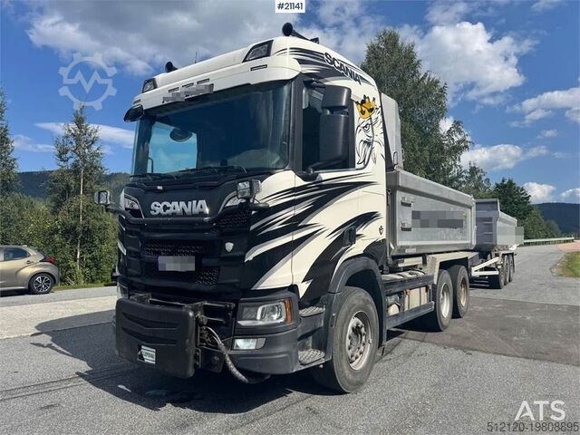 Scania R580 тандем-самосвал, год выпуска 2018. Оснащён для зимней эксплуатации с системой подачи соли. Коробка передач была полностью заменена на пробеге около 330 000 км. Технический осмотр пройден, автомобиль используется еженедельно. Трёхосный прицеп Maur 2019 года выпуска может быть предоставлен за дополнительную плату. Возможна быстрая поставка.