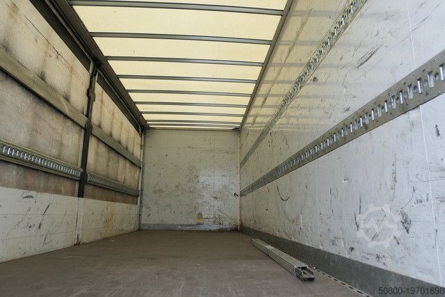 Съёмный кузов сдвижная штора слева, оцинкованная вспомогательная рама, алюминиевые борта разделяемые 1x, высотой 600 мм, двойные задние распашные двери с поворотным запорным механизмом, по 2 анкерные шины под распорные балки с каждой стороны, фанерный ламинированный (противоскользящий) пол, сплошное перфорационное крепление по внешней раме, транспортное средство может быть оклеено рекламой и/или содержать надписи.