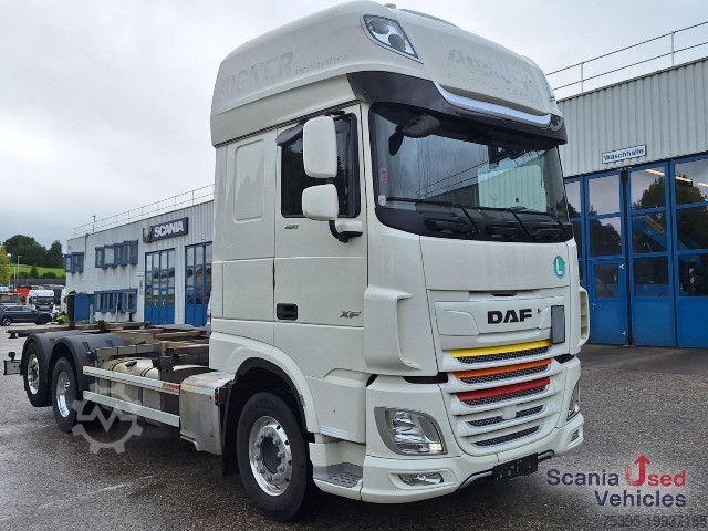 Empty weight: 10492kg, permissible total weight: 26000kg, air-air suspension, intarder, brake assist, traction control ASR, auxiliary air conditioning, heated seats, radio, multi-function display, lane keeping assistant, power steering, adjustable steering column, alloy wheels, sunroof, outside temperature display, fog lights, electric exterior mirrors, central locking, sun visor, winter package, winter tires, cool box, safety package, collision warning, mirror package, speed limiter, touchscreen operation, wide tires, seat climate control, DAF XF 480 6X2 lift axle + steering axle Euro 6 automatic intarder 1st owner Super Space Cab 2 lying tires 385/55 + 315/70 climate control auxiliary heating auxiliary air conditioning FGNR XLRASH4300G313283 production 2020 aluminum rims TUV checked! 2x 620 Lt. Diesel tanks, non-binding offer, subject to errors and prior sale. Illustration may not necessarily correspond to the offer.