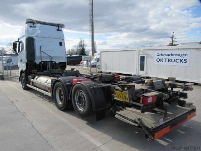 Color white IC 194, empty weight: 10805 kg, permissible total weight: 26000 kg, air suspension, 1 x airbag, folding tail lift aluminum: Dautel Slider 1,500 KG, steered lift axle, intarder, tachograph, electronic stability program ESP, traction control ASR, comfortable seat for driver/passenger, air-suspended driver/passenger seat, height-adjustable driver seat, passenger armrest, heated seat for driver/passenger, lane departure warning system, multifunction leather steering wheel, lumbar support for driver/passenger, electric windows, roof spoiler, electric and heated exterior mirrors, tire pressure monitoring system, central locking with remote control, rear differential lock, underride protection, sun visor, cool box, daytime running lights, turning assistant, - container loading 7.45, errors and changes excepted.