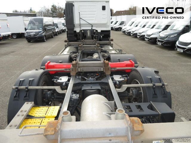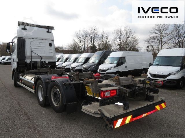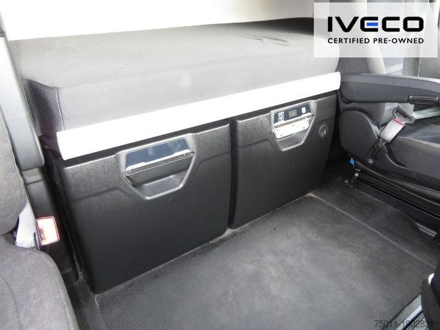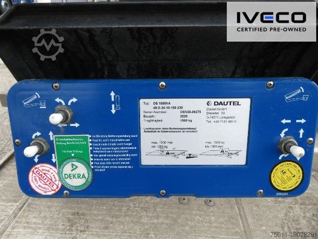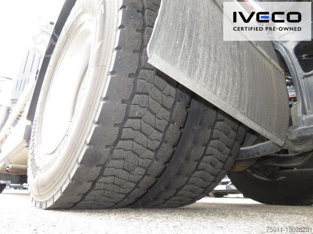 CERTIFIED PRE-OWNED Standard, Color White IC 194, Unladen weight: 10805kg, Gross vehicle weight: 26000kg, 1st axle: 385/55 R22.5, 2nd axle: 315/70 R22.5, 3rd axle: 385/55 R22.5, Fabric seats, Gray interior, Air suspension, Folding aluminum tail lift: 1500kg Dautel, Steered lift axle: Force-steered liftable trailing axle, Intarder: ZF, Digital tachograph, Maul trailer coupling: Towing capacity 24000kg, BDF swap body frame, Electronic Stability Program ESP, Traction Control ASR, Automatic climate control, Parking air conditioning, Adaptive Cruise Control ACC, Auxiliary heating with automatic preselection, Comfort seat driver/passenger, Air-suspended driver/passenger seat, Driver/passenger seat height adjustable, armrest driver/passenger, seat heating driver/passenger, LED headlights, automatic headlights, headlight range control, radio, digital radio reception DAB, multi-function display, AUX & USB connection, Bluetooth audio streaming, Bluetooth mobile phone preparation, lane departure warning, multifunction leather steering wheel, power steering, adjustable steering column, lumbar support driver/passenger, 2-way electric windows, panoramic tilting roof electric, outside temperature display, roof spoiler, exterior mirrors electric and heated, curb mirror, wide-angle mirror, tire pressure monitoring, immobilizer, central locking. With remote control, rear differential lock, underride protection, sun visor, twin tires, 2 fire extinguisher holders, forced steering, cool box, axle load indicator, hill start assist, LED daytime running lights, 1x15-pin connector, pop-up roof, cup holder, ECO-ROLL coasting function, digital instrument cluster, speed limiter: 90 km/h, touchscreen operation, driver's seat climate control, emergency brake assist, upper and lower beds, suspended cab, ECOSWITCH, full air suspension, exterior sun visor, VDI interface for telematics systems, trailer version, lifting device for leading axle, OBU preparation, ECO-Fleet, driving style analysis (DSE) and driver fatigue detection (DAS)