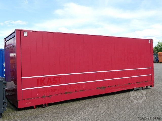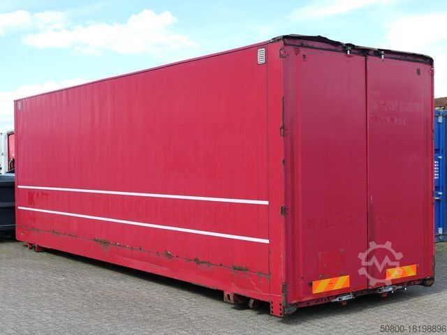 Сменный кейс, двустворчатая дверь со шпингалетным замком сзади, внутренние стены покрыты трафаретной печатью, 1 анкерная рейка для запирающих стержней с каждой стороны, пол с трафаретной печатью, автомобиль может быть покрыт рекламой и/или маркировкой