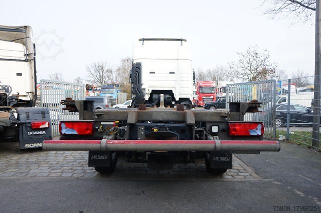 MAN TGX 26.440 6x2-2 LL swap chassis, Euro6, automatic gearbox, Intarder, XXL cab with 2 sleeper berths, ACC adaptive cruise control, lane assistant, collision warning system, air suspension, lift axle, 2x trailer hitch standard/under coupling, 1 tank 800 liters, auxiliary heating, automatic air conditioning, heated seats, cooling compartment, sun visor, radio/CD/AUX