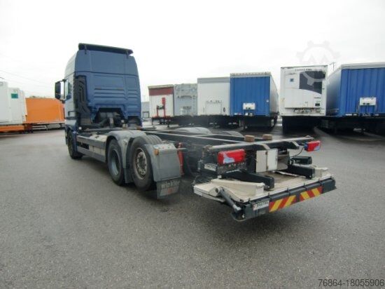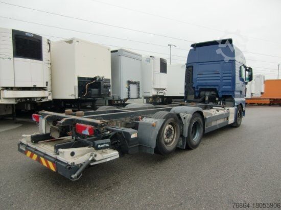 | MAN TGX 26.440 XLX 6x2 swap chassis | automatic, E6, retarder, | air conditioning, refrigerator, heated seats | auxiliary heating, cruise control | multifunction steering wheel, el. windows, el. mirrors | on-board computer, | lift axle, trailer coupling | 9865 kg unladen weight | lower folding platform | Austrian vehicle | errors excepted.