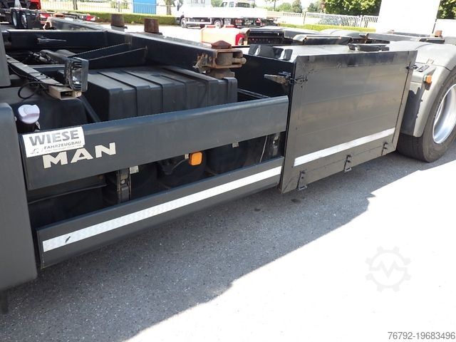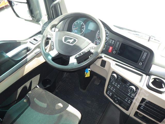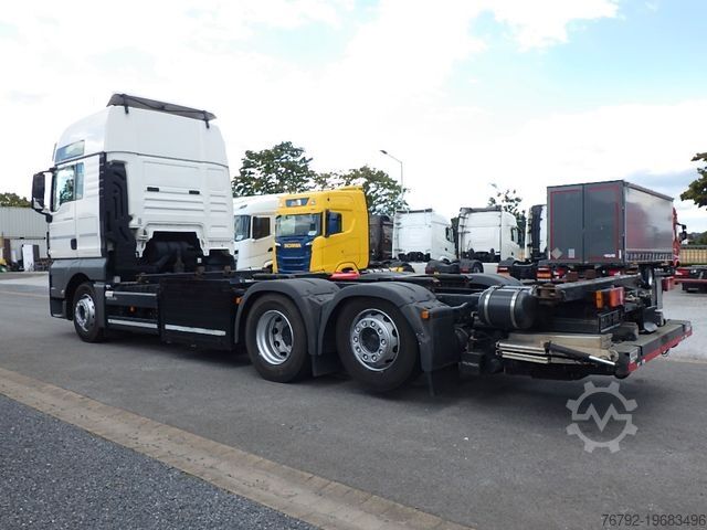BDF swap chassis with a ride height of approx. 1,220 mm, suitable for swap bodies of 7,150 mm and 7,450 mm length, Palfinger under-run foldable tail lift, 2,000 kg, aluminum platform approx. 1,800 mm. XXL long-distance driver cab with 2 bunk beds, ZF-Intarder, automatic climate control, Waeco stationary air conditioning, auxiliary heater, external sun visor, roof spoiler, comfort driver’s seat (air-suspended and heated), dual electric windows, electrically adjustable and heated exterior mirrors, roof spoiler, ESP, ABS/ASR, ACC (Adaptive Cruise Control), LGS IV (Lane Change Warning System), disc brakes with EBS, Emergency Brake Assist 2 (EBA2, not switchable), emergency braking signal (ESS), MAN BrakeMatic, EVBec, controlled rocker arm brake, 12-speed ZF transmission type ZF 12 TX 2621 DD with MAN TipMatic shift, 590 l aluminum tank right side, 60 l AdBlue tank, digital tachograph, H7 halogen twin headlamps, fog and additional high-beam headlamps in the bumper with cornering light, LED daytime running lights, LED reversing lights, refrigerator, MAN Tronic (on-board computer), MAN Media Truck Advanced 12V radio with 7" display, navigation (defective display), MAN sound system, multifunction steering wheel, central locking with remote control, exterior storage compartments left and right, storage box on left side, coupling jaw with dual-line brake system, front and rear axles air-suspended with lifting and lowering device, trailing axle both liftable and steerable, rear axle differential lock, wheelbase 4,500 mm, GVW 26,000 kg / payload 16,190 kg, permissible gross combination weight 44,000 kg, 2nd owner, well-maintained workshop condition, good overall condition! ORIGINAL MILEAGE (verifiable), Euro 6C engine, low-noise, German vehicle with German documents, sale only to businesses! All details without guarantee! Subject to errors and prior sale!
