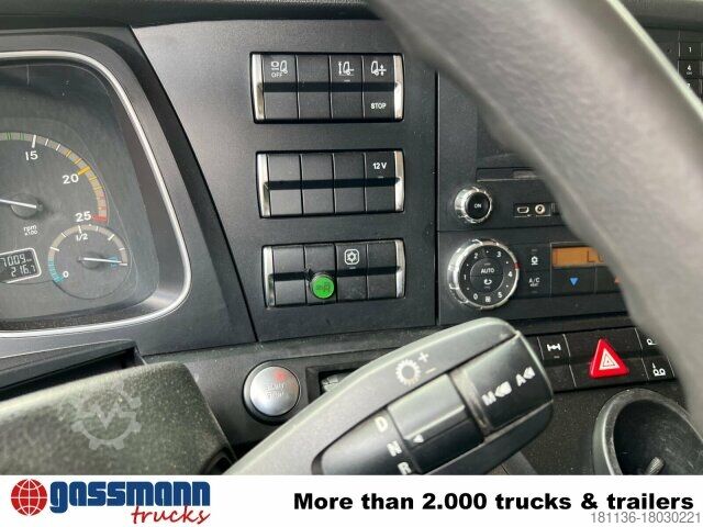 Vehicle location: Bovenden, StreamSpace, Active Brake Assist, Mercedes PowerShift 3, Lg. House, 1x comfort seat, 1x recliner, heated seats, electric mirrors, heated mirrors, electric window left, electric window right, air conditioning, cruise control, electric roof, auxiliary heating, ABS (anti-lock braking system), traction control (ASR), retarder, roof spoiler, lift+lower, differential lock, fog lights, work lights, storage box, air suspension, air+light trailer hitch, aluminum tank, G1 noise protection, U-protection, lateral aluminum road protection, green environmental badge, green environmental badge. Aluminum side guards, green environmental sticker