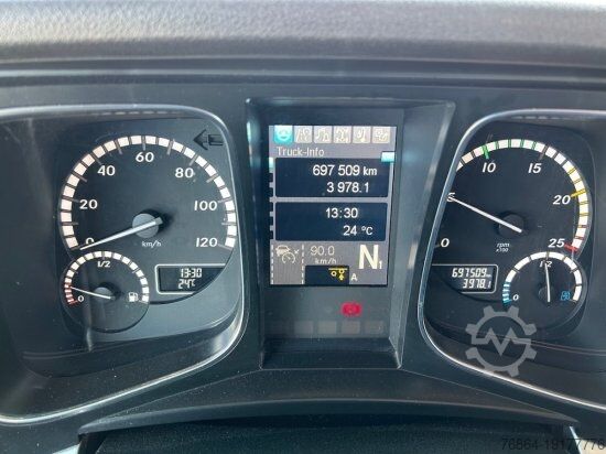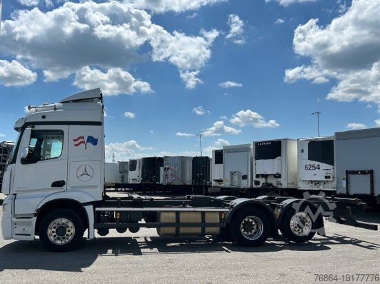 | Mercedes Actros 2545 6x2 EURO6 | Climate control, refrigerator, heated seats, retarder | Auxiliary heating, leather multifunction steering wheel | Cruise control, lane departure warning | Trailer coupling, 3rd axle liftable | Tires: 385/55 R22.5 and 315/70 R22.5 | 9989 kg unladen weight | Austrian vehicle | Top condition!! Errors and pre-sales excepted.
