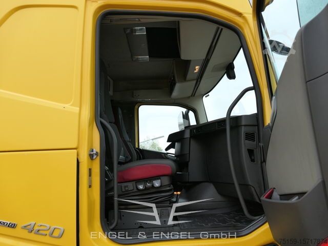 The used Volvo FH 26.420 6x2 BDF offers a reliable transport solution with its powerful 12,777 cc six-cylinder diesel engine and an output of 428 hp. The vehicle meets the Euro 6 emissions standard and has a green environmental sticker. It was first registered on December 8, 2014 and has so far covered 1,148,225 km. The truck is equipped with an automatic transmission and has space for two people.
