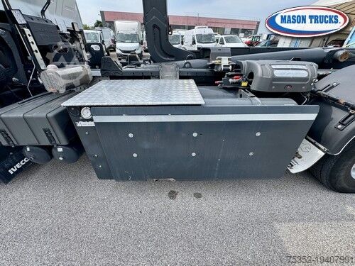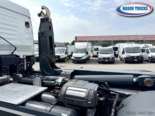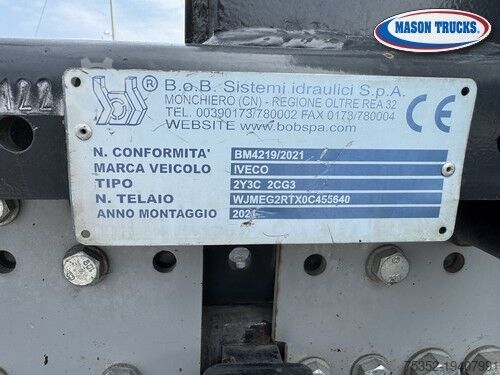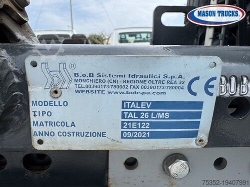 Telescopic articulated hooklift system BOB model TAL 26 L/MS, 26 tons, extension + slewing, vertical roller, hydraulic crane connections, can mount containers from min. 5.20 m to max. 7.20 m, towing bell.